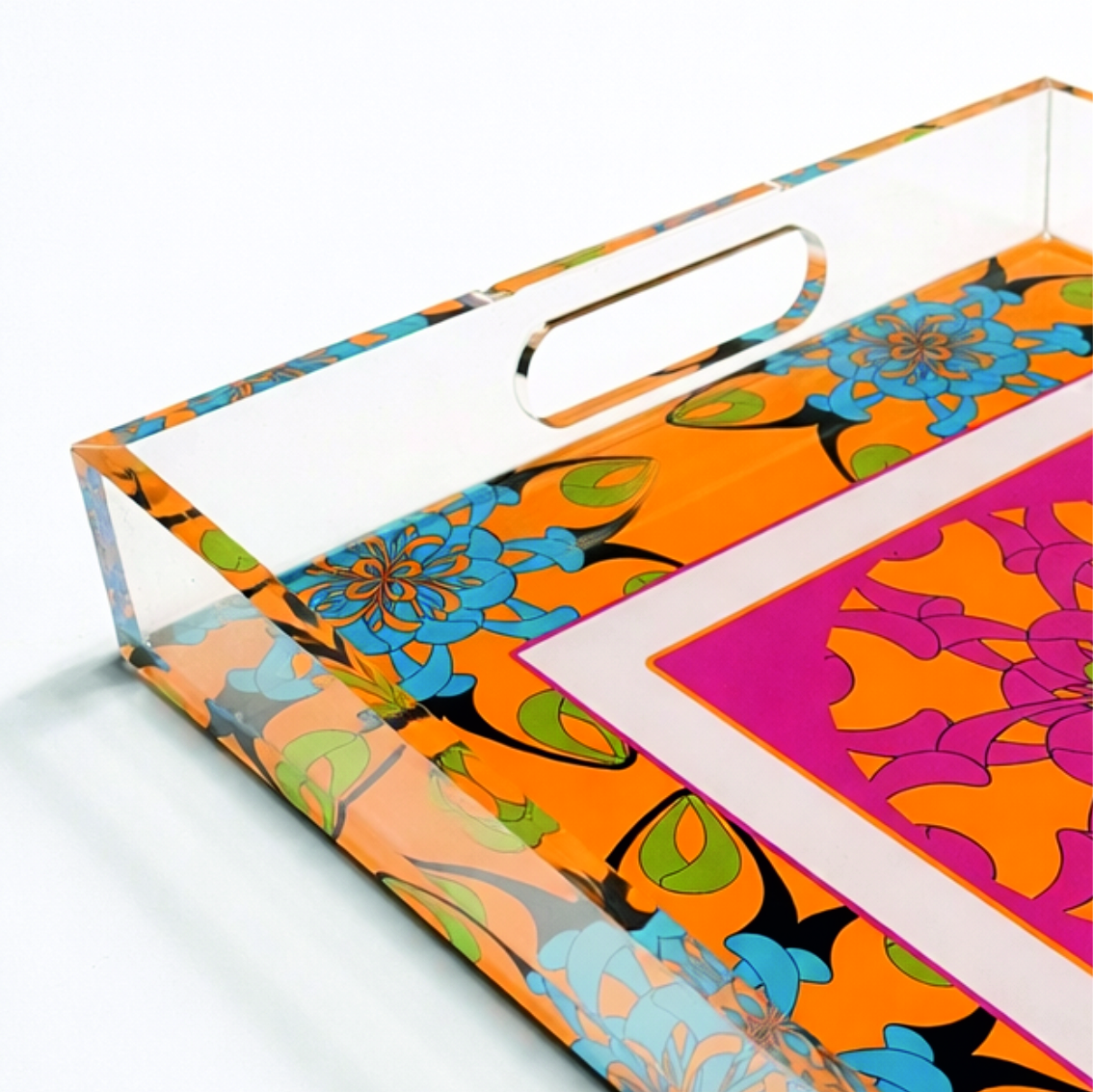 Vassoio Quadrato in Cristallo Acrilico Arancione